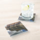 Dieser Untersetzer besticht durch ein wunderschönes Foto, das rote Felsbrocken einfängt, die sich in ruhigem Seenwasser widerspiegeln. Die gestreiften Felsen verlaufen bis hinunter zur Wasserlinie, da sich die einzigartigen Formationen, der blaue Himmel und die Wolken im Wasser widerspiegeln.