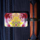 Helles und funkelndes originales Fraktal Design, abstrakte psychedelische Kunst, rote Feder