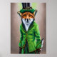 Niedlicher und bezaubernder Saint Patrick's Tag roter Fuchs mit grünen Kleider und grün und schwarz Hut. Das ist eine künstlerische KI.