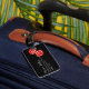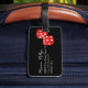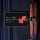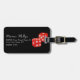 Dieses spezielle Gepäckanhänger bietet ein einfaches und elegantes Casino-Thema auf schwarzem Hintergrund. Auf der rechten Seite wird ein Bild von Würfeln im Rotwein mit dem Namen und der Adresse auf dem links Glitzer abgebildet. Es ist perfekt für einen Craps-Fan, einen Bunco-Fan oder ein anderes Würfel-Rollspiel.