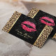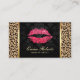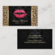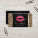 Moderne Red Lips Damask & Leopard Print Makeup Artist Business Cards.