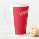 Red Happy Ferien mit whimsical dekoriert Bäume und Schneeflocken Latte Tasse. Diese charmante und festliche Tasse eignet sich perfekt für die Saison und für Feiertage auf Zuhause oder im Büro. Design von Inge Lewis, großartiges Geschenk für Familie oder Freunde. Weitere passende Artikel finden Sie im Online-Shop ingeinc.com.