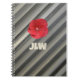 Feines, stilvolles Notizbuch mit roter Hibiskus-Blume und modernen monochromen Streifen in glatten Grautönen personalisiert mit fett formatierten Initials ist ein einzigartiger und raffinierter Stil für Ihre Journaling and Note behaltend. Das ist die ursprüngliche botanische Fotografie von JLW_Fotografie.