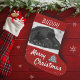 Feierliche Red Hund oder Hausname und Foto Weihnachts-Strümpfe. Ferien-Design in roter Farbe mit Weihnachtsbaum. Legen Sie Ihr Foto ein und personalisieren Sie den Strumpf mit dem Namen Ihres Hundes.