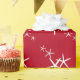 Starfish auf dunkelrotem Packpapier auf einer Rolle. Qualitäts-Papier mit großen und kleinen weißen Seesternmustern kommt in Ihrer Wahl von Farben und Längen.