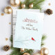 Rote Kardinal-Fotokarte. Winterbirkenbaum mit rotem Kardinal auf der Rückseite dieser Karte, Platzierung des Fotos auf der Vorderseite.