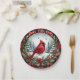 Roter Kardinal mit Stechpalmenbeeren Pappteller