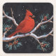 Roter Kardinal mit Winterroten Berries Rechteckiger Pappuntersetzer