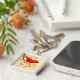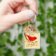 Nordroter Kardinal auf stilisierten Zweigen mit dekorativen Blätter in HerbstHerbstfarben auf Schlüsselanhängern