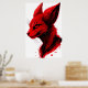 Ein Portrait einer coolen Kunst eines roten Katzenkopfes. Die Katze ist vollkommen still, ihre Augen konzentrierten sich auf etwas in der Ferne. Das ist eine künstlerische KI.