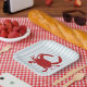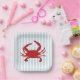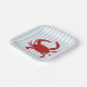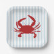Genießen Sie unsere nautisch-roten Krabben, die blaue Streifen Papier Teller für jedes Party.