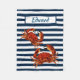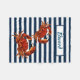 Rote Krabbe über blaue Streifen; perfekt für nautische oder küstennahe Ausblicke.