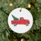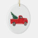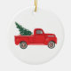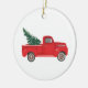 Genießen Sie unseren Retro-roten LKW mit Baumschmuck-Design.