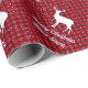 Roter Lumberjack Büffel kariert Hirsch rustikale Weihnachtswrapping Papier. Personalisierte Geschenkverpackungsrollen mit individuellem Holiday Gruß und Namen. Winterwald Silhouette Design mit eleganter Schriftzeichen. Schöne Rentiere, Geweihe und Schnee.