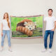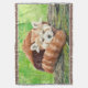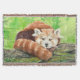 Aquarellmalerei eines roten Panda auf einem alten Baumstamm.