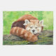 Aquarellmalerei eines roten Panda auf einem alten Baumstamm.