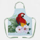 Roter Papagei, der zwischen tropischen Blume und Blätter im hellblauen Hintergrund sitzt