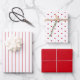 Dieses Set der Umhüllung Papier Blatt hat eine solide rot gefärbte Blatt mit koordinierenden Blätter roter Pinstreifen auf weiß, und roten Polka Punkte auf weiß. Ideal für Weihnachten oder Valentine.