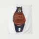 Dieses Ausrüstungsbeschreibungen ein brauner Bär des Watercolor, der eine rote Strickren Weihnachtsstrickjacke weraing ist.