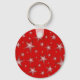 Modernes Design mit leuchtenden, leuchtenden roten und weißen Sternen auf rotem Hintergrund. Schlüsselanhänger mit einem rot-weiß anpassbaren Design für Sie, um mit Ihrem eigenen Text, Bildern und Ideen zu personalisieren. Erstellt von Jess Perry unter Verwendung von Originalfotos und Digitaltechniken.