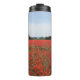 Roter Splash im Mohnfeld-Trommel Thermosbecher