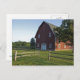 Eine Scheune oder ein Farm Liebhaber wird es genießen, den rustikalen Roten Stall mit Zaun Postkarte zu schicken oder zu erhalten. Diese bezaubernde Postkarte aus dem eigenen Land zeigt ein landschaftliches Landfoto einer roten Scheune und einen Holzzaun bei Sonnenaufgang.