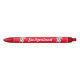 Ein roter Stift des Spaßes (Ordnung und Tinte) mit zwei niedlichen kleinen weißen und schwarzen Kühen und dem Wort "die Schweiz" ordentlich geschrieben in weiße Buchstaben.