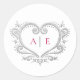 Roter Text auf weißer Hochzeit im Silberherz Runder Aufkleber