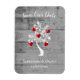 Ankündigen Sie Ihren bevorstehenden Hochzeitstag für Familie und Gäste mit einem Roten Tree of Hearts Save the Date Magnet. Das Magnet-Design ist mit einem grauen Holzboden verziert, der mit einem Baum mit blühenden Herzen an seinen Ästen geschmückt ist. Personalisieren Sie mit dem Bräutigam und den Namen der Braut zusammen mit dem Hochzeitstag. Zusätzliche Hochzeitswaren und Geschenke sind mit diesem Design ebenfalls erhältlich.