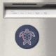 Eine stilisierte Meeresschildkröte ist mit überlappenden roten und blauen Linien vor einem dunklen Hintergrund umrissen und erzeugt einen anaglyischen 3D-Glitch-Effekt. Geometrische Muster schmücken die Muschel und die Flossen fügen eine moderne abstrakte Touch hinzu. Tags: Schildkröte, Meeresschildkröte, minimalistische, geometrische Muster, Natur, Meereslebewesen, Tier, Reptil, Meeresleben, Ozeanleben, Anaglyphenyle, 3D-Effekt, Glitch, Effekt, modern, Silhouette, Design, Muster, Kontur, symmetrisch, geometrisch, rot und blau