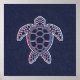 Eine stilisierte Meeresschildkröte ist mit überlappenden roten und blauen Linien vor einem dunklen Hintergrund umrissen und erzeugt einen anaglyischen 3D-Glitch-Effekt. Geometrische Muster schmücken die Muschel und die Flossen fügen eine moderne abstrakte Touch hinzu. Tags: Schildkröte, Meeresschildkröte, minimalistische, geometrische Muster, Natur, Meereslebewesen, Tier, Reptil, Meeresleben, Ozeanleben, Anaglyphenyle, 3D-Effekt, Glitch, Effekt, modern, Silhouette, Design, Muster, Kontur, symmetrisch, geometrisch, rot und blau