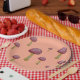 Eine Aquarellfarbe, die ich von einem roten Pilz mit weißen Punkten zeichnete.