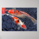 Zwei roter und weißer Koi-Karpfen (Cyprinus) an der Wasseroberfläche