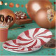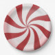 Gemacht, um wie eine runde, rote und weiße gestreifte Pfefferminzsüßigkeit auszusehen, reizt möglicherweise dieser festliche Feiertagspapier-Teller Sie, um einen Biss zu nehmen. Von meinem ursprünglichen digital-geschaffenen Bild.