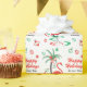 Ein Spaß, festlicher, Flamingoein entwurf mit einer retro Touch im Rot und ein Grün. Rote Flamingos waten im Wasser nahe bei den Palmen, die mit Weihnachtsflitter und -band verziert werden. Ein kundengerechter Entwurf, damit Sie mit Ihrem eigenen Text, Bildern und Ideen personifizieren. Ein ursprüngliches digitales Kunstbild geschaffen durch Jess Perry.
