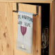 Ein Glas Rotwein mit einem lustigen Zitat und ein Sand Dollar auf einem Ozean Aquarell abstrakten Hintergrund Text kann geändert werden.