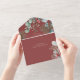AUCH MIT EINEM QR CODE ZUM SCAN VERFÜGBAR. Mit unserer bezaubernden Winterhochzeit-Einladung, in der die Schönheit der Saison vor einem tiefen, einladenden, reichen roten Hintergrund zum Leben erweckt wird. Die zarte Wasserfarbe von Kiefer, Eukalyptus, Hüften in der rote Rose und verschiedenen Grünflächen schaffen eine Szene, die den Geist eines Winterwunderlandes perfekt einfängt. Bereiten Sie sich darauf vor, Ihre Gäste mit einer Einladung zu verzaubern, die den Charme der rustikalen Eleganz und den Zauber der Saison verkörpert. Die natürlichen Elemente symbolisieren die anhaltende Kraft und Schönheit Ihrer Liebe, während die dunkelrote Kulisse ein gemütliches und einladendes Set für Ihre Feier darstellt. Set die Bühne für eine Winterhochzeit, die die Schönheit der Natur und die Wärme Ihrer Verbindung feiert. Mit dieser wirklich faszinierenden Einladung wird Ihr besonderer Tag eine zeitlose und bezaubernde Feier sein, die für alle, die teilnehmen, geschätzte Erinnerungen schafft. Erstellt von der einfachen Farmhouse Press.