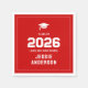 Dieses mutige und moderne Abschlussdesign zeigt einen lebendigen roten Hintergrund, der von einem sauberen weißen Rahmen umgeben ist, für einen polierten, herausragenden Look. Zentrierte Typografie hebt "Jahrgang 2026" unter einem klassischen Abschlusskappen-Symbol hervor und schafft einen starken und feierlichen Mittelpunkt. Der angezeigte Name und der Schultext sind Teil einer Vorlage und können vollständig angepasst werden, um die Details Ihres Absolventen zu übernehmen. Die knackige weiße Schrift kontrastiert schön mit dem roten Hintergrund und macht dieses Design perfekt, um eine kohärente und stilvolle Note zu Abschlussfeierlichkeiten und Tischdekorationen hinzuzufügen.
