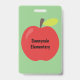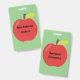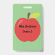 Fertigen Sie den Namen, den Grad und die Schule auf diesem roten Apfel-Abzeichen besonders an.