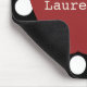 Ein Geschenk für die Lehrer, die eine Illustration eines roten Apfels über einem schwarzen Hintergrund mit weißen Tupfen kennzeichnen. Personifizieren Sie mit Ihrem Namen.