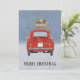 Rotes Auto mit Weihnachtsgeschenken Weihnachtskart Feiertagskarte