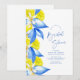 Feiern Sie die zukünftige Braut mit dieser pulsierenden Brautdusche im mediterranen Stil. Dieses Design mit Aquarelllemonen, üppiger Vegetation und klassischen blauen Fliesenakzenten verleiht Ihrem Event ein frisches und elegantes Küstenstreifen. Ideal für Frühlings- und Sommergarten-Party, Brunch im Freien oder toskanische Ansammlungen. Passen Sie Ihre Veranstaltungsdetails an, um eine persönliche Touch zu erhalten, die von den Gästen Liebe wird.