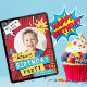 Rotes Comic Geburtstagsparty mit Bild Einladung