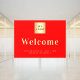 Rotes Firmenlogo Begrüßung Fensteraufkleber