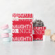 Feiertags-Packpapier mit weißem Text, der freches oder Nizza liest. Sie können den roten Hintergrund besonders anfertigen, um jede mögliche Farbe zu sein, die Sie wollen.
