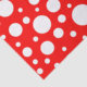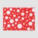 Weiße Flecken unterschiedlicher Größe auf rotem Hintergrund.