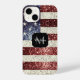 Rotes goldblauer Glitzern Monogram iPhone 14 Hülle