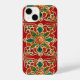 Rotes Grünes Orangengelbes Azulejos Blumenmuster iPhone 14 Hülle