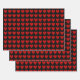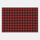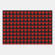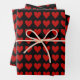 Ein Set aus drei dekorativen Verpackungsblättern mit einem Muster von leuchtend roten Valentinherzen auf einem raffinierten, soliden, schwarzen Hintergrund