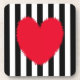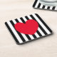 Rotes Herz auf schwarz-weiß gestreiftem Hintergrund